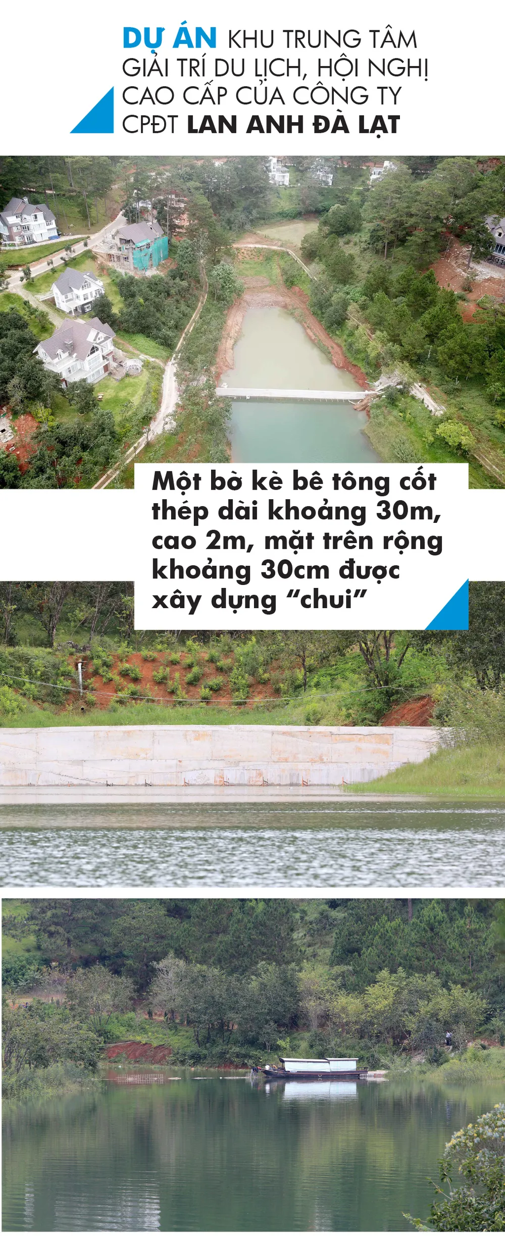 Tại khu vực dự án Khu trung tâm Giải trí Du lịch, Hội nghị cao cấp của Công ty Cổ phần Đầu tư Lan Anh Đà Lạt, một bờ kè bê tông cốt thép dài khoảng 30m, cao 2m, mặt trên rộng khoảng 30cm được xây dựng “chui”.