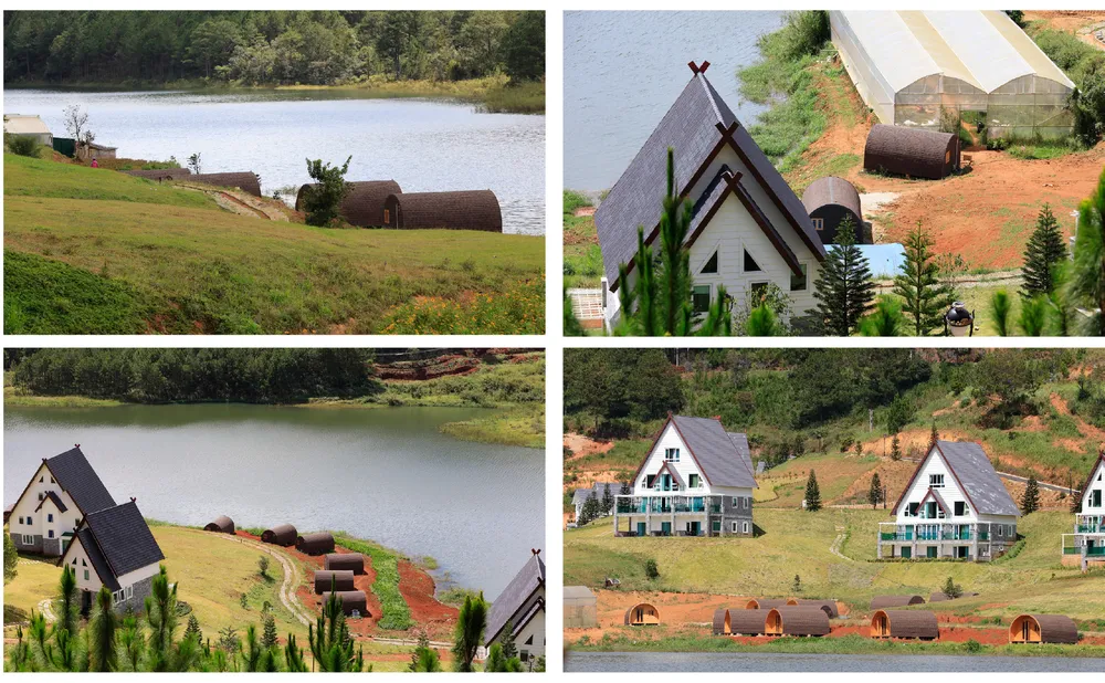 19 căn nhà gỗ (vách, sàn bằng gỗ, mái lợp bằng tấm nhựa tổng hợp) với tổng diện tích 456m2 (mỗi căn 24m2) thuộc Khu nghỉ dưỡng cao cấp và du lịch sinh thái Hoàng Gia của Công ty Cổ phần Đầu tư Lý Khương (tại Tiểu khu 157B, phường 4, TP Đà Lạt) vừa bị cơ quan chức năng vừa phát hiện và yêu cầu di dời toàn bộ.