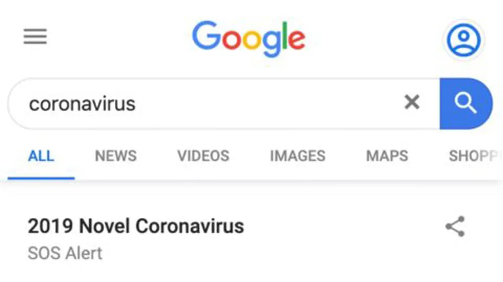 Theo đó, Google đã kích hoạt cảnh báo SOS trong kết quả tìm kiếm cho các tìm kiếm liên quan đến sự bùng phát của coronavirus.