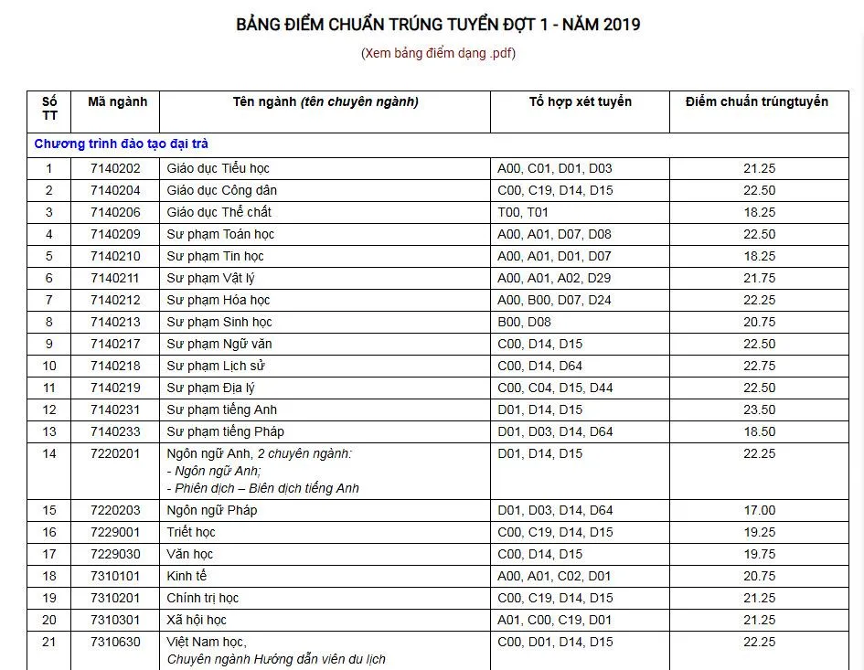Đáng chú ý, hầu hết các ngành sư phạm đều có điểm chuẩn trúng tuyển khá cao, dao động từ 18,25 điểm đến 23,5 điểm.