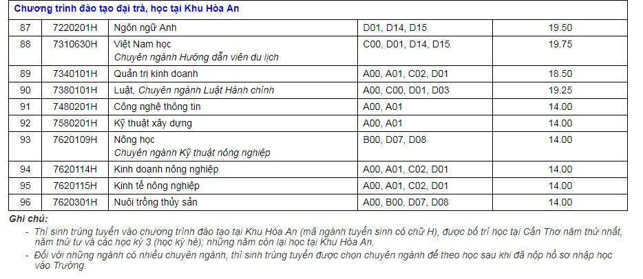 Trường Đại học Cần Thơ vừa công bố điểm chuẩn trúng tuyển đợt 1 - năm 2019. Theo đó, điểm trúng tuyển thấp nhất là 14 điểm, cao nhất là 23,5 điểm (ngành Sư phạm tiếng Anh có điểm chuẩn cao nhất).