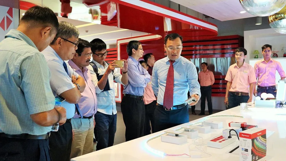 Đại diện Công ty CP Bóng đèn Điện Quang giới thiệu quy trình công nghệ sản xuất chip LED của Điện Quang