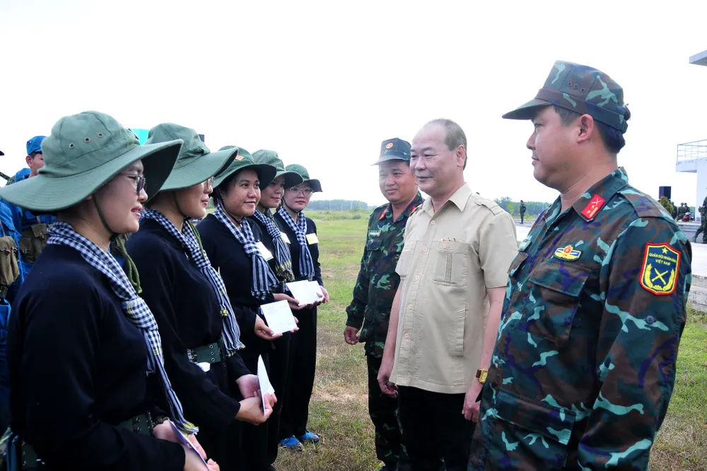 Dịp này, thủ trưởng Bộ Tư lệnh TPHCM và lãnh đạo các địa phương đã thăm hỏi, động viên và tặng quà cho các đơn vị tham gia diễn tập.