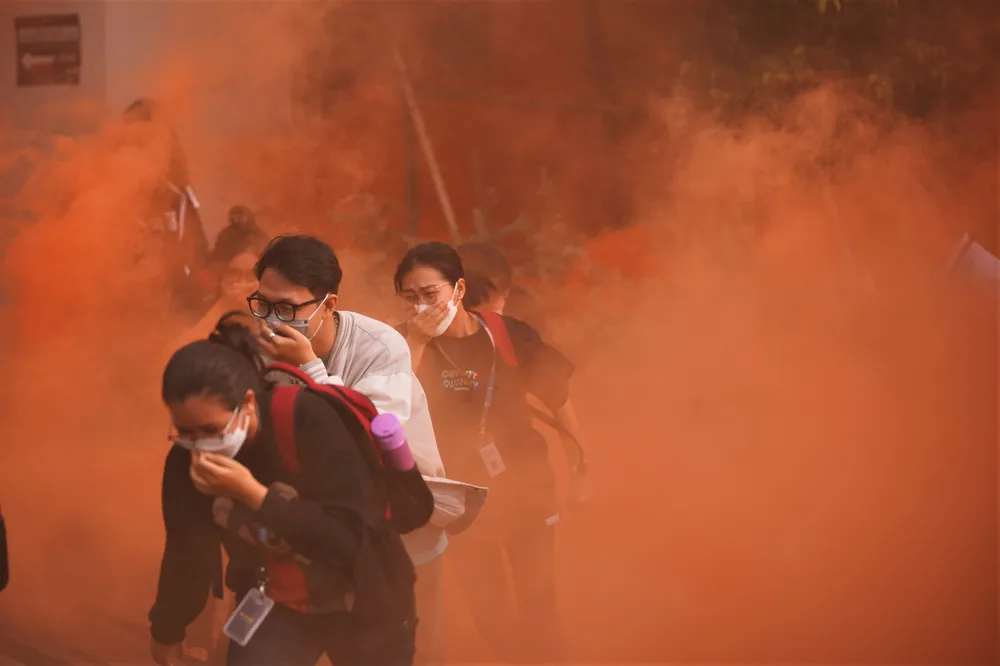 Tình huống giả định, khoảng 15 giờ 30, tại khu vực căn tin dịch vụ tầng trệt của trường xảy ra cháy do bất cẩn trong sử dụng nguồn lửa tiếp xúc với các chất cháy. Chỉ sau ít phút, ngọn lửa bùng cháy dữ dội.