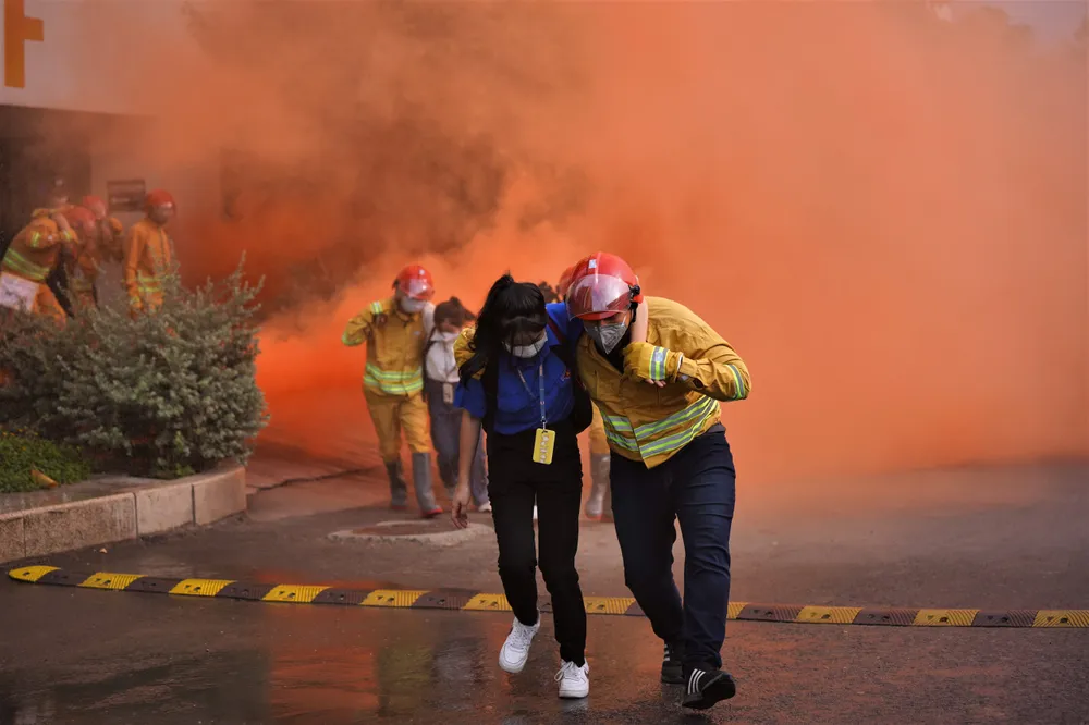 Lực lượng PCCC tại chỗ phát chuông hướng dẫn người bên trong thoát nạn theo lối thoát hiểm thang bộ và di chuyển vật dụng, tài sản có giá trị ra khu vực an toàn.