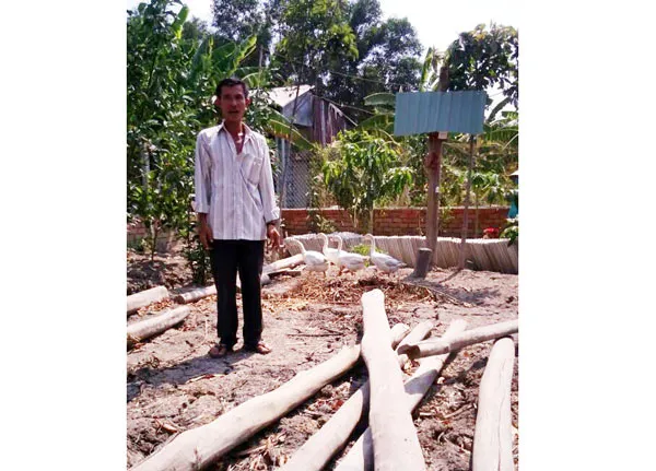Ông Nguyễn Văn Bỉ trên nền đất xây chòi nuôi vịt