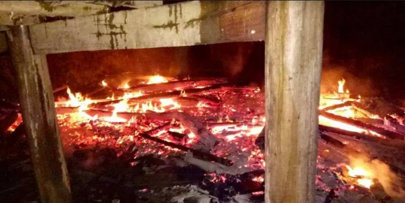 Đèn hết dầu nên bà Lương Mẹ Chuẩn (50 tuổi, Nghệ An) tìm can dầu để đổ vào. Tuy nhiên, vì trời tối nên bà lấy nhầm can xăng đổ vào khiến can xăng bắt lửa, cháy bùng lên thiêu rụi căn nhà. 2 mẹ con bà Chuẩn bị bỏng nặng.