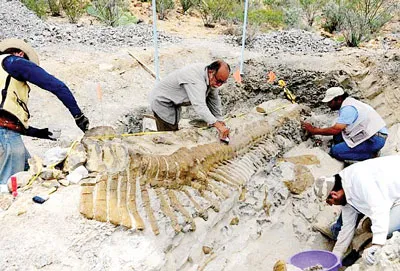 Các nhà khảo cổ đã khai quật xương đuôi của một con khủng long hóa thạch có niên đại 72 triệu năm tại một sa mạc ở bang Coahuila, Mexico. Chiếc đuôi dài 5m, còn nguyên vẹn 50 đốt sống. Xung quanh đuôi là các đốt xương hóa thạch phần hông của con khủng long.