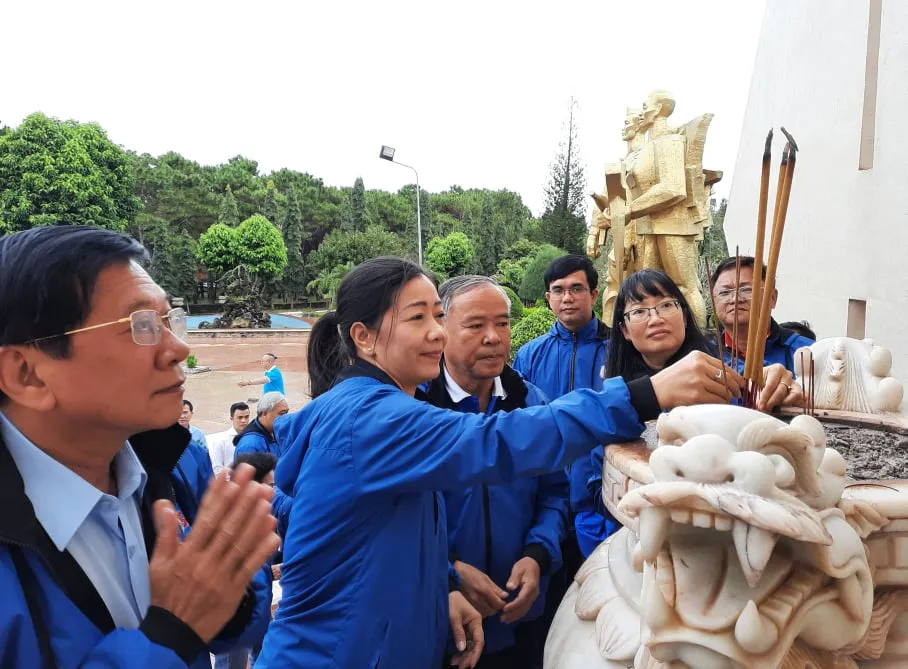 Các thành viên trong đoàn dâng hương tưởng nhớ các anh hùng, liệt sĩ