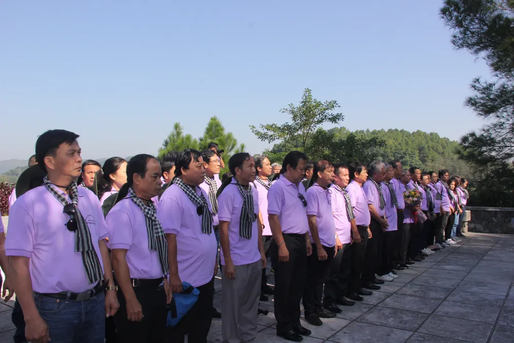 Các thành viên trong đoàn dâng hương tưởng niệm 13 chiến sĩ TNXP hy sinh tại Truông Bồn ngày 31-10-1968