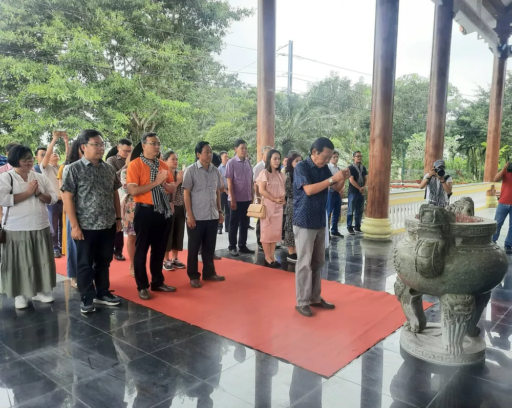 Viếng di tích lịch sử đền thờ Chủ tịch Hồ Chí Minh tại xã Châu Thới, huyện Vĩnh Lợi, tỉnh Bạc Liêu, đoàn tổ chức lễ dâng hương tưởng niệm đến Bác, vị lãnh tụ thiên tài, Anh hùng giải phóng dân tộc, danh nhân văn hóa thế giới.