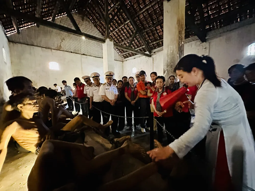Tiếp đó, đoàn đã có hành trình đến tham quan Bảo tàng Côn Đảo; khu di tích đặc biệt nhà tù Côn Đảo; Trại giam Phú Hải và Trại giam Phú Tường; Trạm ra đa 590 thuộc Trung đoàn 251, nằm trên đỉnh núi Thánh Giá, ở độ cao khoảng 600m so với mặt nước biển, được ví như những con mắt thần trên biển, đảo...