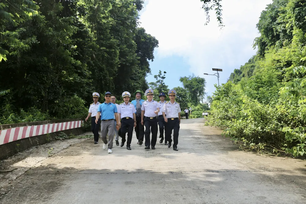 Đoàn công tác thăm cán bộ, chiến sĩ đang làm nhiệm vụ ở đảo Hòn Khoai. Ảnh: CHÍ THẠCH |
