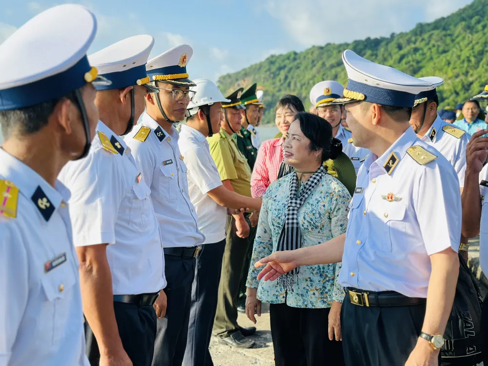 Thay mặt đoàn công tác, bà Trần Thị Phương Hoa, Phó Chủ tịch Hội Liên hiệp Phụ nữ TPHCM, Phó Trưởng đoàn công tác bày tỏ niềm vui, xúc động khi được cùng các thành viên của đoàn tới thăm cán bộ, chiến sĩ đang làm nhiệm vụ ở đảo Hòn Khoai. Đây là một trong những đảo Tây Nam có vị trí rất quan trọng, góp phần tạo nên thế trận vững chắc của vùng biển Tây Nam của Tổ quốc.