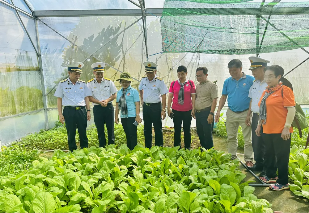 Đoàn tham quan khu vực tăng gia sản xuất do cán bộ, chiến sĩ tự trồng, chăm sóc. Ảnh: CHÍ THẠCH |