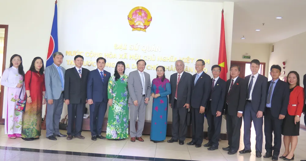 Chiều cùng ngày, Đoàn đại biểu cấp cao TPHCM tới thăm, làm việc với Đại sứ quán Việt Nam tại Lào. Thay mặt đoàn đại biểu, đồng chí Nguyễn Thị Lệ đánh giá cao việc thực hiện các nhiệm vụ của Đại sứ quán, là cầu nối gắn bó quan hệ hai nước Việt Nam và Lào, giữa TPHCM và thủ đô Viêng Chăn bền chặt.