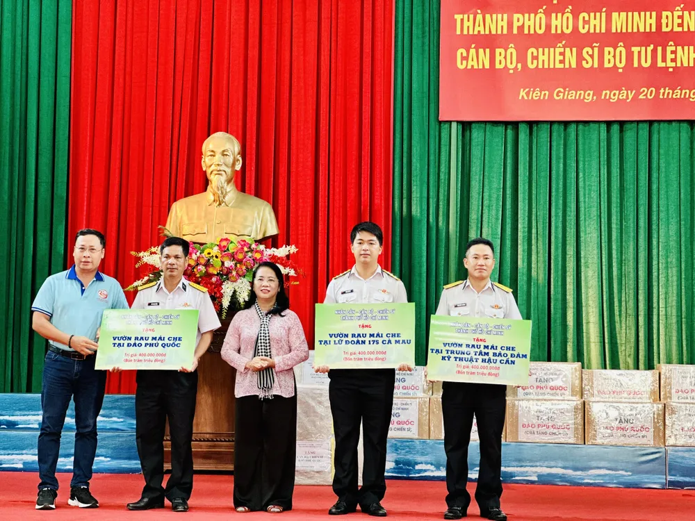 “Đảng bộ, chính quyền và nhân dân TPHCM sẽ làm hết sức mình hỗ trợ, chia sẻ những khó khăn, góp phần cùng cán bộ, chiến sĩ các đơn vị Vùng 5 Hải quân nói riêng, các lực lượng đang làm nhiệm vụ trên vùng biển, thềm lục địa phía Nam Tổ quốc nói chung thực hiện có hiệu quả chủ trương, chính sách của Đảng, pháp luật Nhà nước về nhiệm vụ phát triển kinh tế biển gắn với bảo đảm quốc phòng, an ninh”, Chủ tịch Ủy ban MTTQ Việt Nam TPHCM nhấn mạnh.