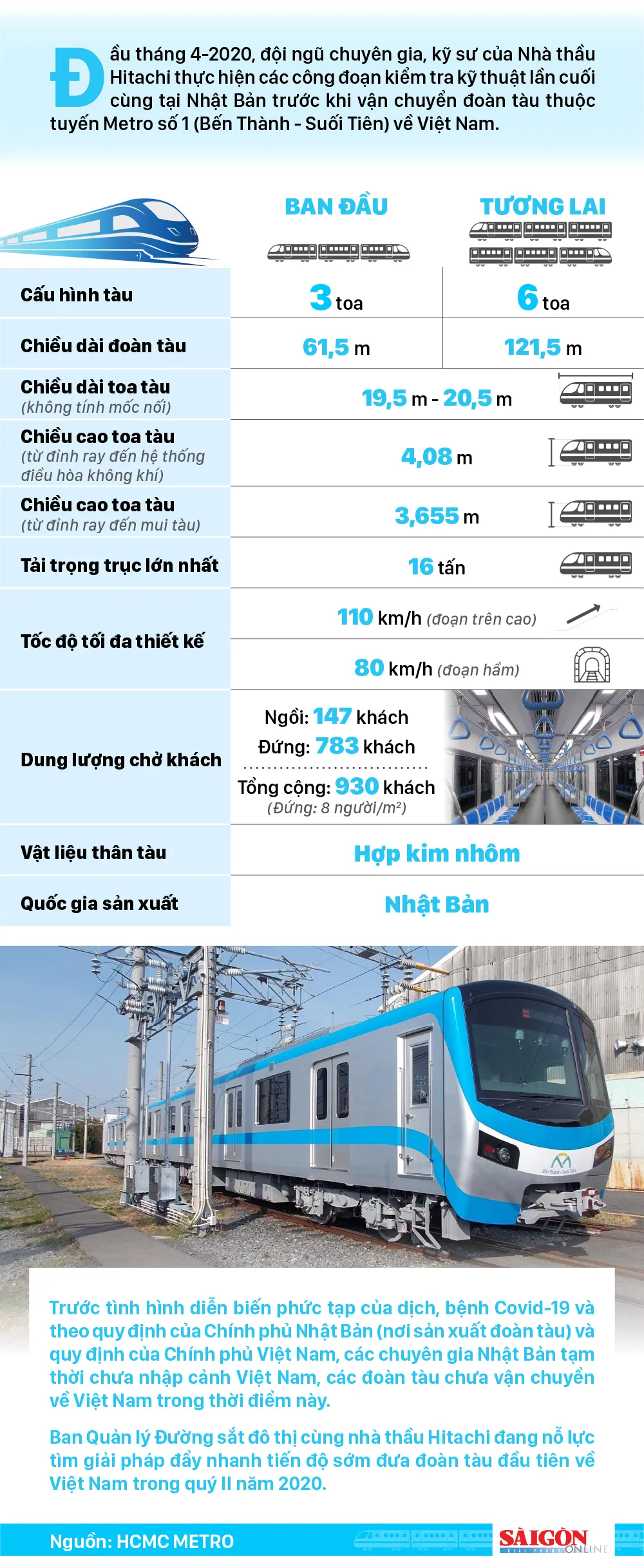 Đầu tháng 4-2020, đội ngũ chuyên gia, kỹ sư của Nhà thầu Hitachi thực hiện các công đoạn kiểm tra kỹ thuật lần cuối cùng tại Nhật Bản trước khi vận chuyển đoàn tàu thuộc tuyến Metro số 1 (Bến Thành – Suối Tiên) về Việt Nam.