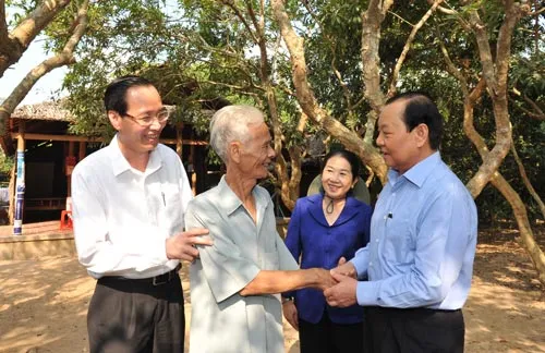 Bí thư Thành ủy TPHCM Lê Thanh Hải và đoàn công tác đến thăm các gia đình đã nuôi giấu cán bộ Khu ủy, Thành ủy Sài Gòn - Chợ Lớn - Gia Định tại Trà Vinh. Ảnh: Việt Dũng