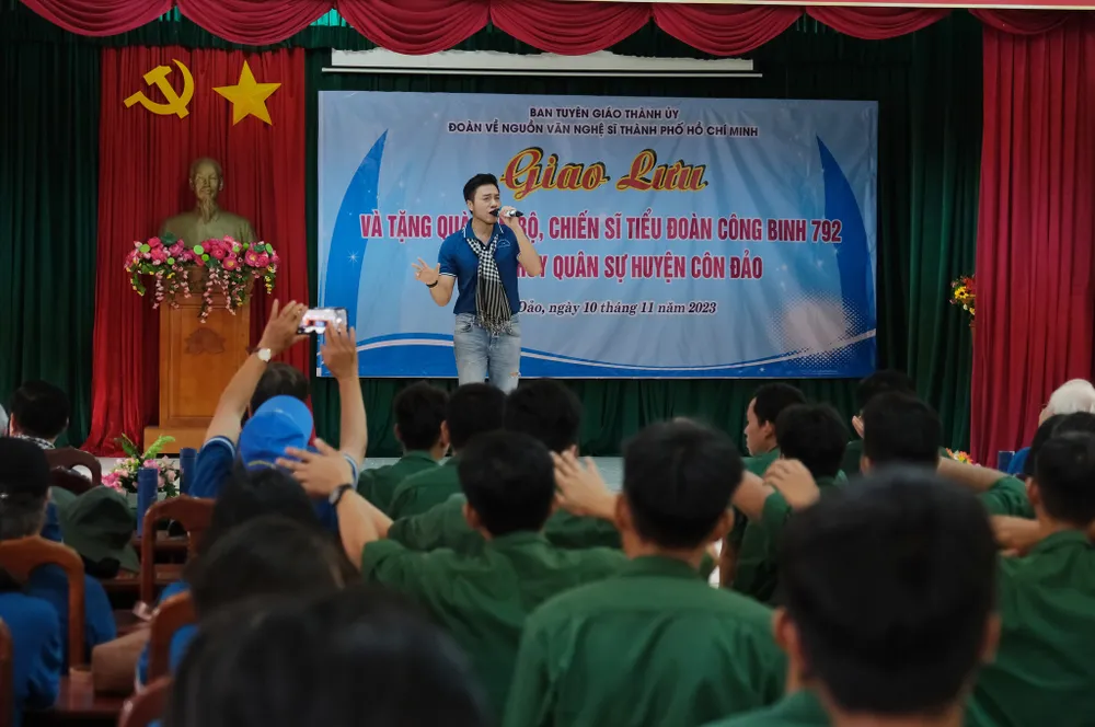 Đoàn văn nghệ sĩ TPHCM giao lưu với cán bộ, chiến sĩ tại Côn Đảo. Ảnh: NGUYỄN HIỀN |