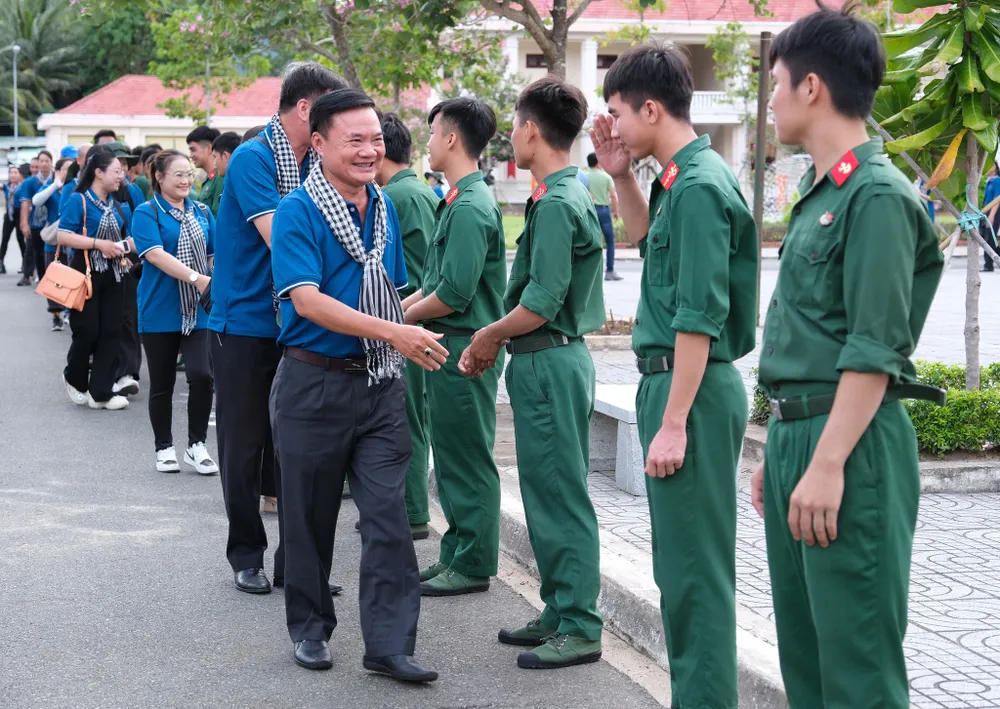 Trong buổi giao lưu, các nghệ sĩ đã mang đến nhiều tiết mục đặc biệt, ý nghĩa. Nghệ sĩ cải lương Bình Tinh - Huy chương Vàng Liên hoan Sân khấu chuyên nghiệp toàn quốc 2022, quán quân Sao Nối Ngôi 2022, thể hiện giọng ca qua trích đoạn Nữ hùng dựng nước. Giọng hát nội lực, diễn xuất xuất thần của Bình Tinh nhận về những tràng pháo tay không ngớt của đông đảo khán giả là các chiến sĩ bộ đội.
