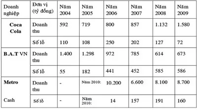 - Công ty B.A.T Việt Nam, DN liên doanh sản xuất ra thuốc lá 555, liên tục khai báo lỗ từ năm 2004, có số lỗ rất lớn. Và rất lạ là có năm số lỗ chiếm đến 90% doanh thu. Một DN khác là Metro Cash&Carry Việt Nam (siêu thị Metro) cũng lỗ nhiều năm liền. Mặc dù doanh số bán của Metro Cash mỗi năm lên đến 10.000 tỷ đồng nhưng vẫn... khai lỗ! Ngoài ra, một số công ty khác cũng khai lỗ nhiều năm mà chúng tôi đang lưu ý làm rõ để kiểm tra xử lý. Chẳng hạn như công ty TNHH Tỷ Hùng nhiều năm báo cáo giá vốn cao hơn doanh thu và liên tục đề nghị hoàn thuế; Công ty QMI Intrustrial Việt Nam cũng liên tục khai lỗ và đề nghị hoàn thuế, chúng tôi cũng đang thanh tra làm rõ.