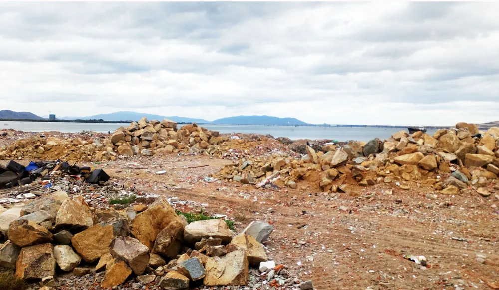 Tuy nhiên, mới chỉ quý 3-2018, DN lại tự ý đưa phương tiện, máy móc thi công đổ đất, đá, xà bần… với hàng ngàn mét khối lấp nhiều diện tích đầm Thị Nại để triển khai dự án.