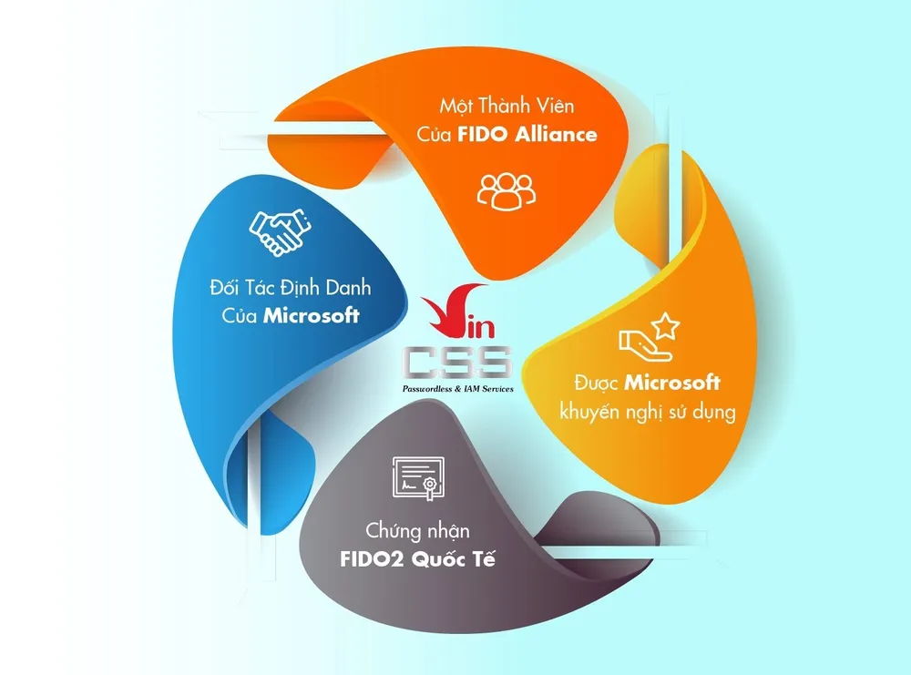 | “VinCSS là một thành viên chính thức của Liên minh Xác thực trực tuyến thế giới (FIDO Alliance). Từ năm 2020, công ty đã lần lượt công bố Hệ sinh thái VinCSS FIDO2 gồm các chủng loại khoá khác nhau (hardkey/softkey), giải pháp xác thực FIDO2 trong nội bộ doanh nghiệp (On-premise) và giải pháp xác thực tập trung sử dụng nền tảng đám mây cho doanh nghiệp. VinCSS còn phát triển các thư viện lập trình và tiện ích giúp doanh nghiệp dễ dàng tiếp cận và tích hợp công nghệ FIDO2. VinCSS cũng cung cấp các dịch vụ tư vấn, hỗ trợ, và các sản phẩm tích hợp công nghệ FIDO2 (điện thoại, xe thông minh, thiết bị IoT). VinCSS FIDO2 đã được cấp 4 chứng chỉ FIDO2 quốc tế, có sản phẩm được Microsoft khuyến nghị sử dụng trên nền tảng Azure AD và VinCSS được chọn là đối tác Định danh năm 2020 của Microsoft.” |