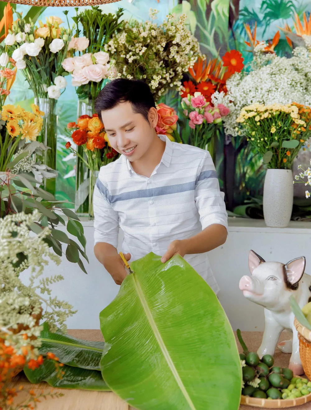 “Hình ảnh những chú cá ở đại dương bị chết do nuốt phải chất thải nhựa hay tình trạng rác thải túi ni lông ngày càng nhiều ở Việt Nam đã làm tôi suy nghĩ, nên thay đổi từ những việc nhỏ nhất, hạn chế sử dụng các vật liệu bằng nhựa hoặc ni lông một cách tối đa. Lá chuối chỉ có một màu xanh duy nhất, hơi đơn điệu, không bắt mắt bằng các loại giấy gói bằng ni lông khác. Chính vì vậy, khi gói hoa, tôi thường phối các loại hoa có màu sắc sặc sỡ, nhiều màu lại với nhau để làm bó hoa thêm đẹp, tăng tính thẩm mỹ. Thời gian tới, cửa hàng sẽ tiếp tục sử dụng lá chuối và các vật liệu như mây, tre để gói hoa. Lá chuối khi thải ra môi trường thì phân hủy rất nhanh mà không độc hại, nên tôi hoàn toàn yên tâm sử dụng”, anh Phú chia sẻ.
