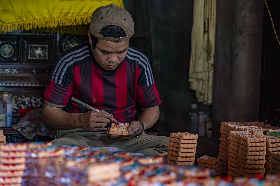 Những người thợ làm tượng ông Táo cần mẩn, tỉ mỉ để tạo nên những sản phẩm đẹp.