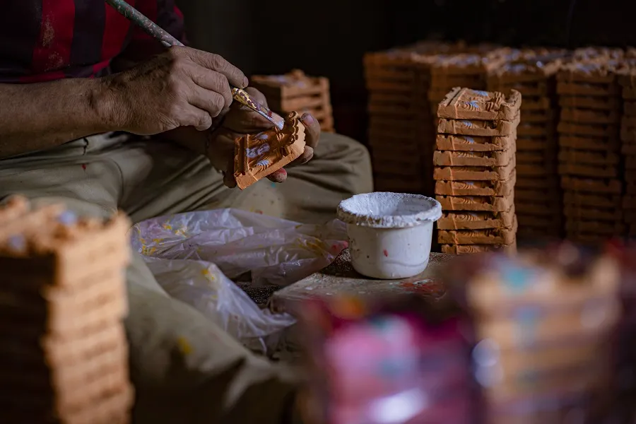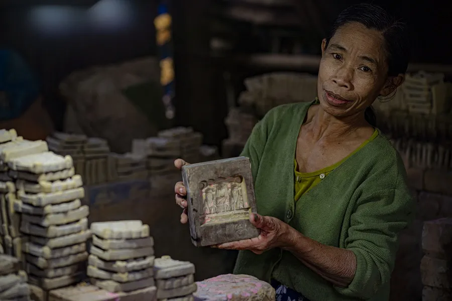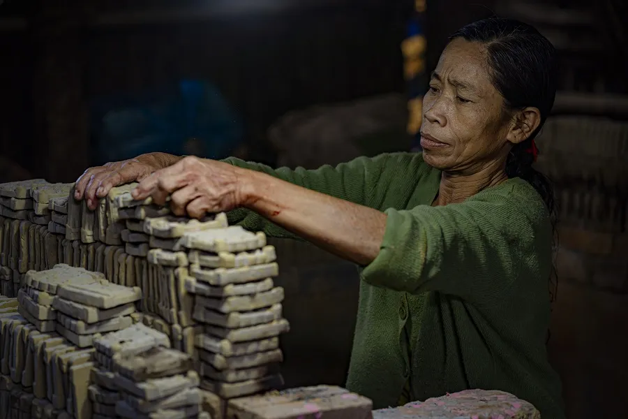 Người thợ tỉ mẩn từng công đoạn nặn và nung tượng |