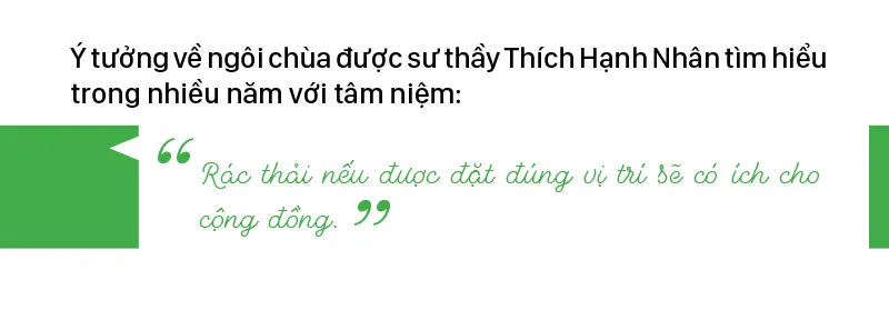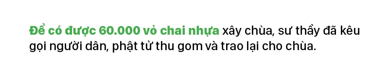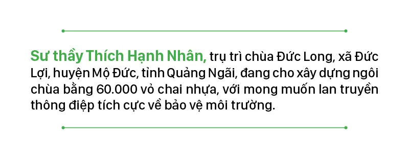 Sư thầy Thích Hạnh Nhân, trụ trì chùa Đức Long, xã Đức Lợi, huyện Mộ Đức, tỉnh Quảng Ngãi, đang cho xây dựng ngôi chùa bằng 60.000 vỏ chai nhựa, với mong muốn lan truyền thông điệp tích cực về bảo vệ môi trường.