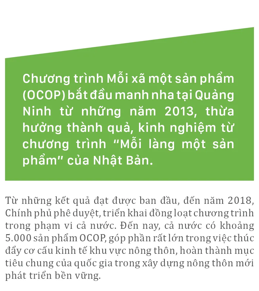 Chương trình Mỗi xã một sản phẩm (OCOP) bắt đầu manh nha tại Quảng Ninh từ những năm 2013, thừa hưởng thành quả, kinh nghiệm từ chương trình “Mỗi làng một sản phẩm” của Nhật Bản.