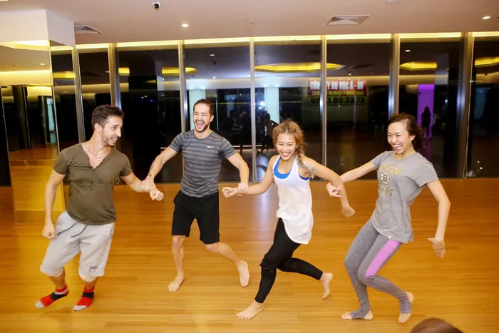 Giây phút thư giãn trong buổi tập luyện của đội huấn luyện viên Chí Anh