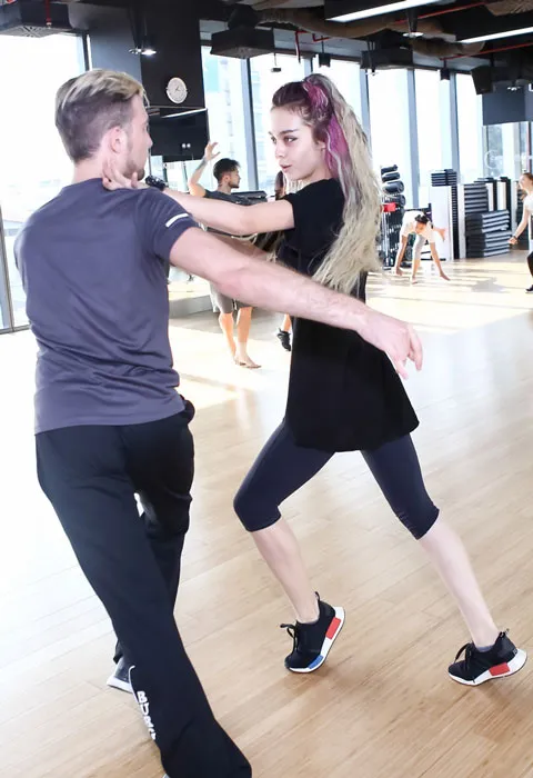 Vũ Ngọc Anh không ngại tập những động tác khó để tái hiện nhân vật cô từng thủ vai trong bộ phim điện ảnh Quyên