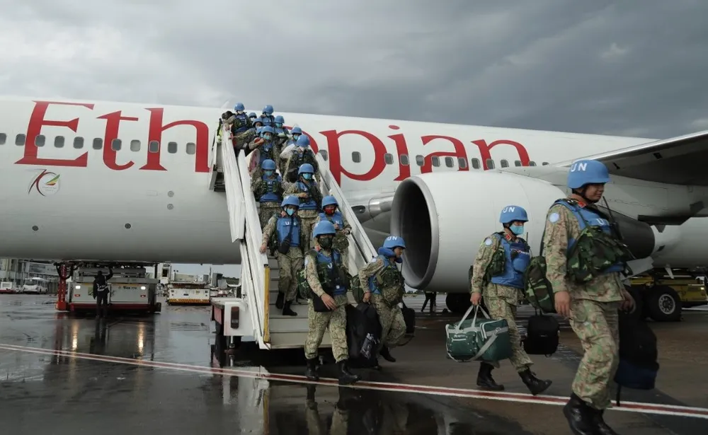 Sáng ngày 14-6, toàn đội chia thành 3 bộ phận để hành quân trên 3 chuyến máy bay cánh cứng từ Entebbe (Uganda) đến Kadougli (Sudan).