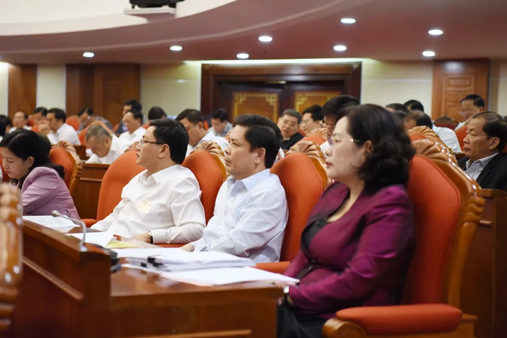 Các đại biểu tham dự hội nghị tại điểm cầu chính trụ sở Trung ương Đảng. Ảnh: VIẾT CHUNG