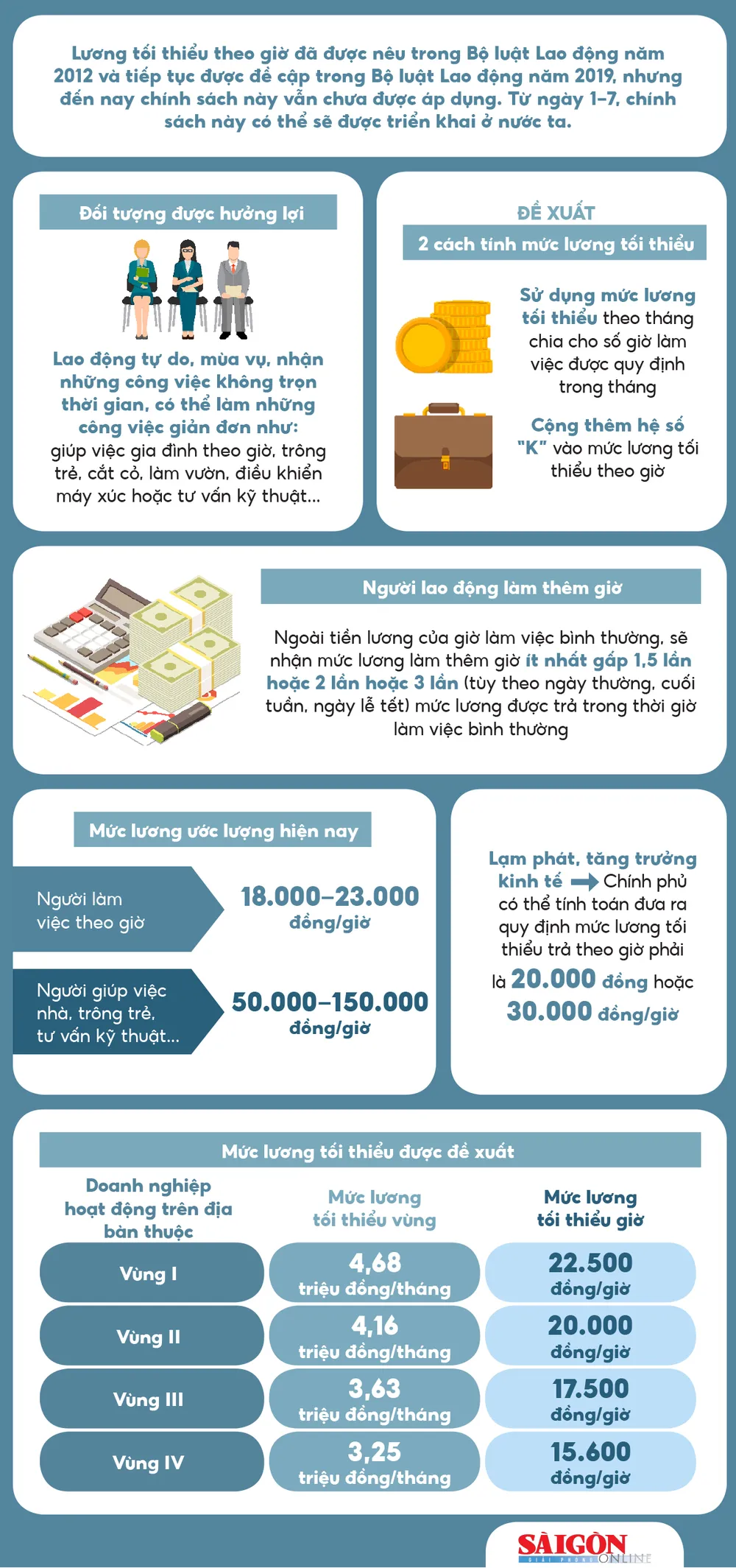 Lương tối thiểu theo giờ đã được nêu trong Bộ luật Lao động năm 2012 và tiếp tục được đề cập trong Bộ luật Lao động năm 2019, nhưng đến nay chính sách này vẫn chưa được áp dụng. Từ ngày 1-7, chính sách này có thể sẽ được triển khai ở nước ta.