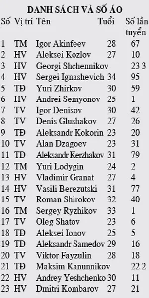 Thật bất ngờ khi năm nay đa số các cầu thủ Nga danh tiếng đều… hồi hương nên toàn bộ danh sách 23 cầu thủ của Fabio Capello đều chơi trong nước. Liệu họ có phải là thứ vũ khí lạ lẫm mà nhà cầm quân người Italia này chuẩn bị cho… World Cup 2018 tổ chức ở Nga?