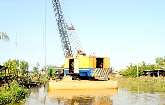 Nạo vét kênh mương dẫn nước phục vụ sản xuất tại tỉnh Sóc Trăng Ảnh: TRUNG HIẾU