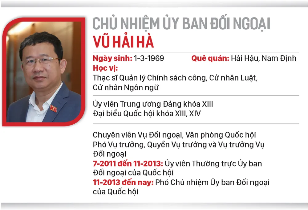 Đồng chí Vũ Hải Hà, Ủy viên Trung ương Đảng, Ủy viên UBTVQH, được bầu giữ chức Chủ nhiệm Ủy ban Đối ngoại của Quốc hội.