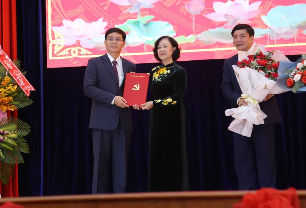 Đồng chí Trương Thị Mai trao Quyết định của Bộ Chính trị về việc điều động, phân công đồng chí Nguyễn Đình Trung giữ chức Bí thư Tỉnh uỷ Đắk Lắk nhiệm kỳ 2020 - 2025