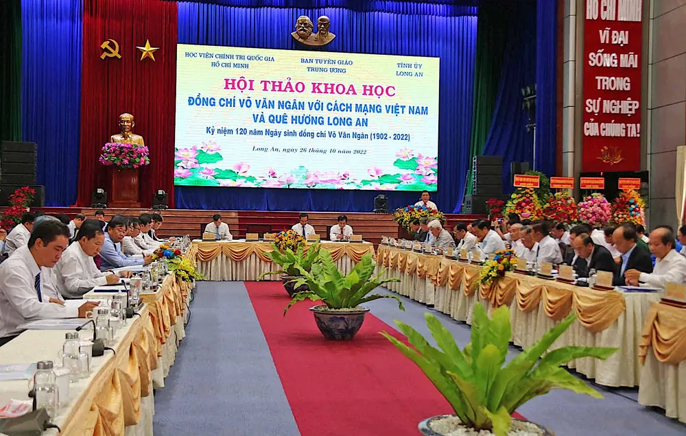 Phát biểu tại hội thảo, đồng chí Nguyễn Văn Được, Bí thư Tỉnh uỷ Long An cho biết, tỉnh Long An tự hào là vùng đất giàu truyền thống yêu nước và đấu tranh cách mạng; là nơi sinh ra những người con ưu tú của đất nước, trong đó có đồng chí Võ Văn Ngân, Ủy viên Ban Chấp hành Trung ương Đảng, Bí thư Xứ ủy Nam Kỳ, lãnh đạo tiền bối tiêu biểu của Đảng và cách mạng Việt Nam, người đảng viên kiên trung và là một trong những đảng viên thuộc thế hệ đầu tiên của Đảng Cộng sản Việt Nam.