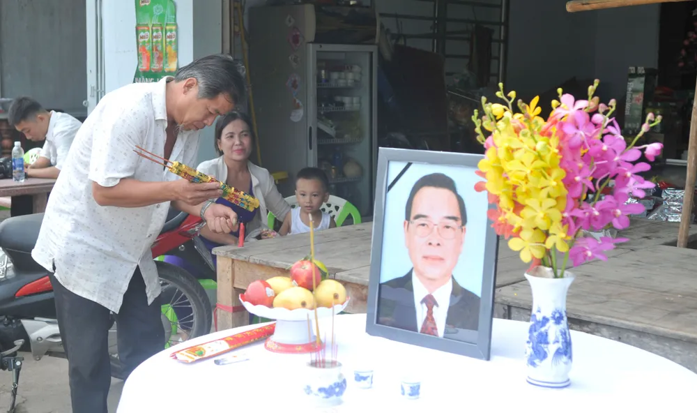Người dân trên đường Lê Minh Nhựt, xã Tân Thông Hội dâng hương nguyên Thủ tướng Phan Văn Khải tại bàn thờ trước nhà. Ảnh: CAO THĂNG