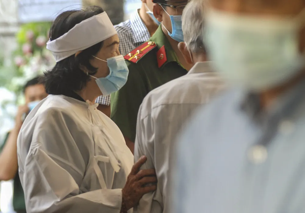 Phu nhân đồng chí Trương Vĩnh Trọng đáp lễ, gửi lời cảm ơn các đoàn đến viếng. Ảnh: TÍN HUY