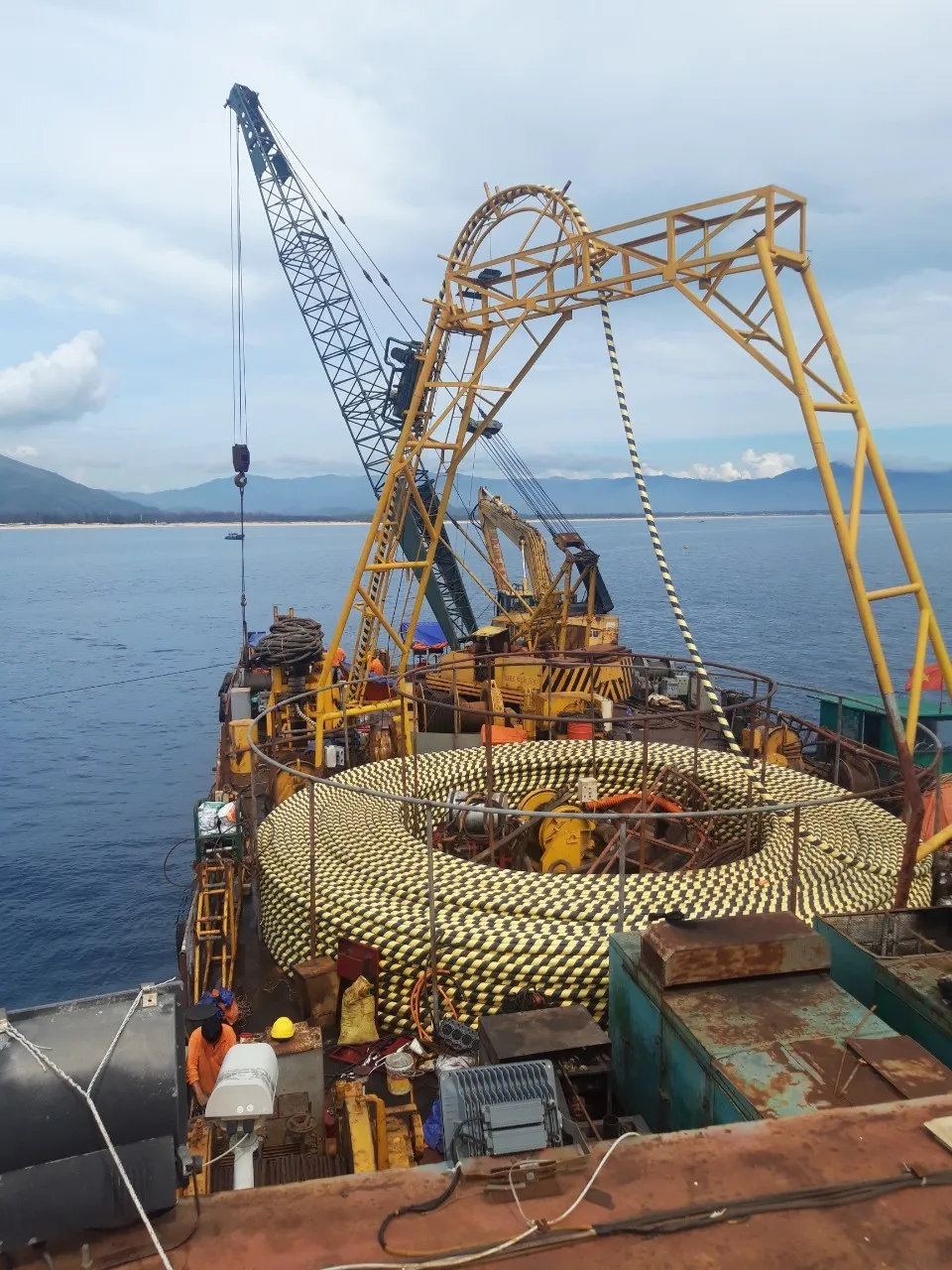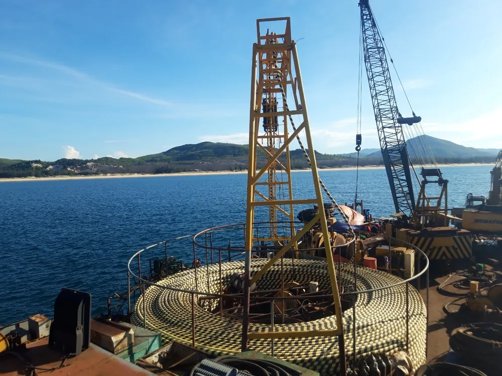 Đơn vị thi công đã nỗ lực trong nhiều tháng để mở tuyến cáp ngầm xuyên biển cấp điện cho đảo Nhơn Châu