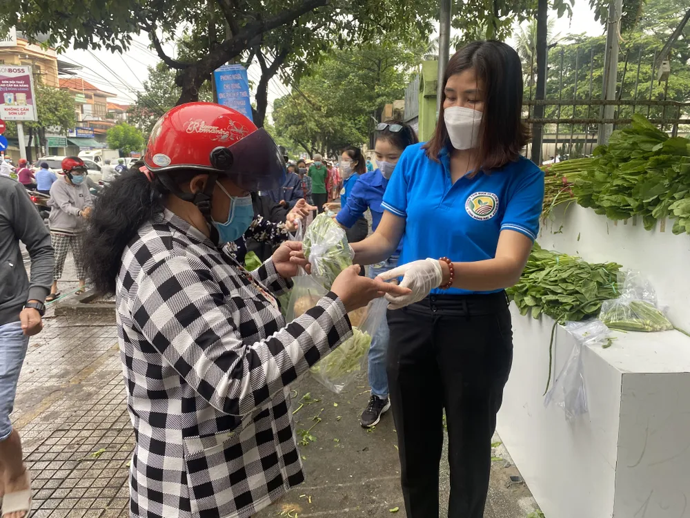 Mỗi người dân sẽ được lấy 1 bịch gồm 3 loại rau các loại. Lượng hàng phục vụ trong ngày đầu tiên là 500 kg nhưng do số lượng người đến nhận đông nên chưa đầy 30 phút mở cửa, quầy đã tạm hết rau cung ứng cho bà con.