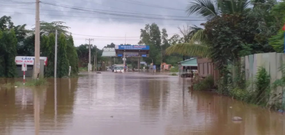 Nước ngập sâu tại khu vực ấp Miễu, phường Phước Tân