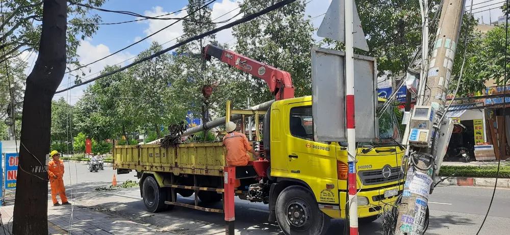 >>>Một số hình ảnh lực lượng chức năng khắc phục sự cố cây xanh gãy cành, trụ điện gãy đổ: