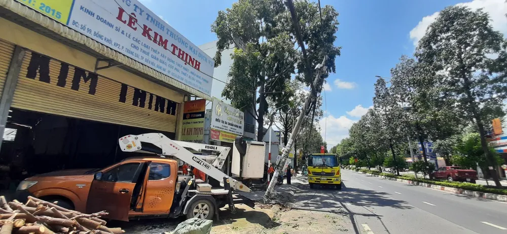 Chiều 5-8, Điện lực Biên Hòa 2 (Công ty TNHH MTV Điện lực Đồng Nai) cho biết, đang cắt điện 300 hộ dân thuộc khu phố 2, phường Trảng Dài (TP Biên Hòa) để khắc phục sự cố cây xanh đô thị gãy cành gây gãy trụ điện trên đường Đồng Khởi.